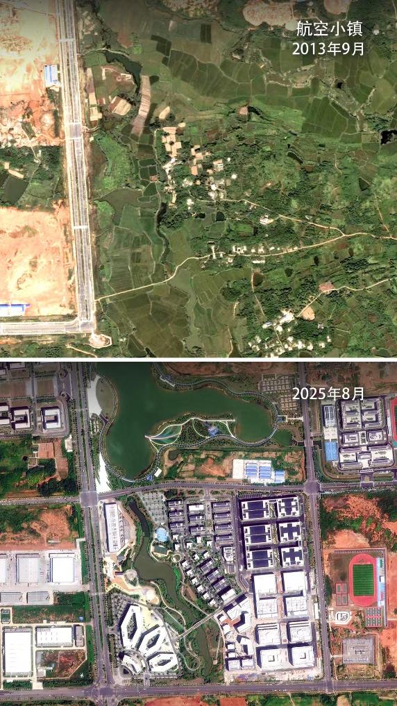 從衛星圖可以清晰看到如今的航空小鎮已“蝶變”為一座產城融合“新高地”。新華社發