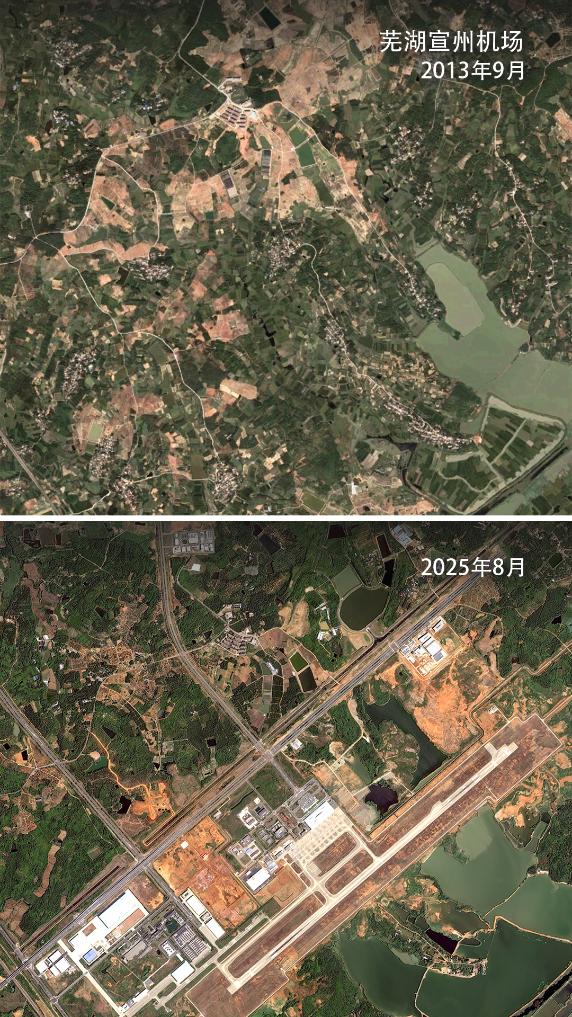堅持港產城融合發展的理念,蕪宣機場積極建設專業航空貨運樞紐港、國際航空器維修保障中心等產業聚集區,通過衛星圖對比可以看出蕪宣機場朝著特色化、專業化、產業化機場方向演進。新華社發