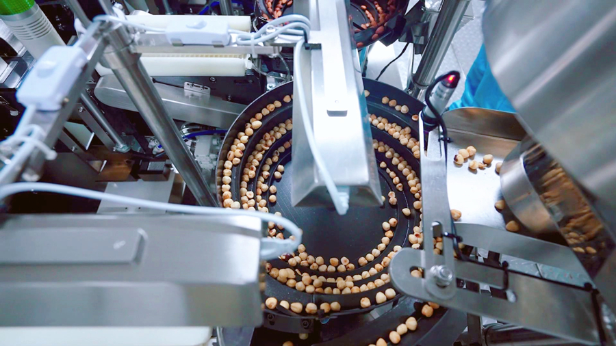 走進三只松鼠(無為)健康食品城每日堅果工廠,一顆顆堅果、果脯經過層層篩選、烘烤,在自動化生產線上完成包裝,經過出廠檢測拿到“合格證”,最后被送到消費者手中。