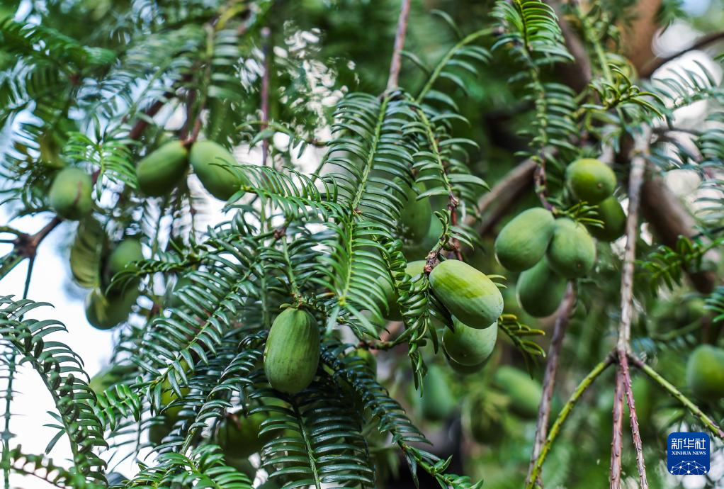 諸暨市趙家鎮宣家山村的香榧樹上碩果累累(9月18日攝)。