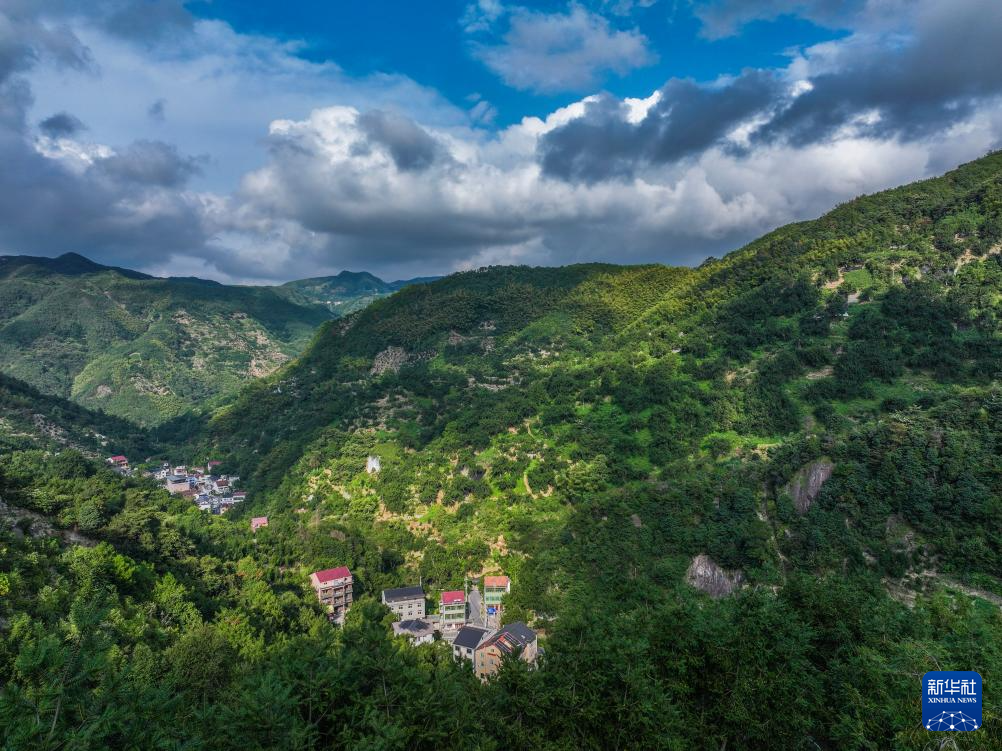 空中俯瞰諸暨市趙家鎮宣家山村的香榧林(9月18日攝,無人機照片)。