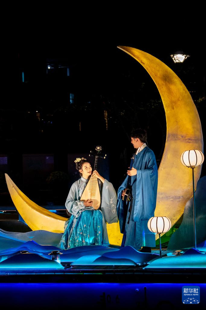 9月23日,在無錫市古運河沿岸,演員為游客表演。