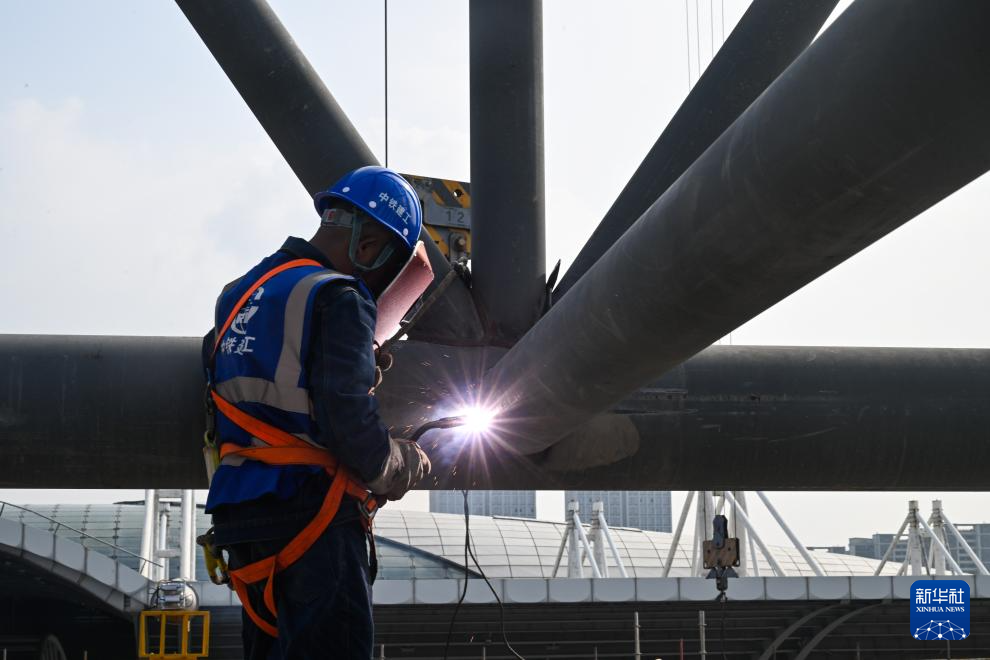 9月28日,中鐵建工工人在施工現場進行焊接作業。