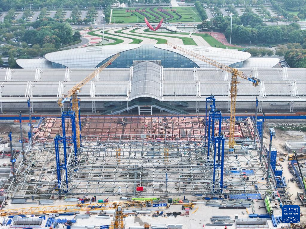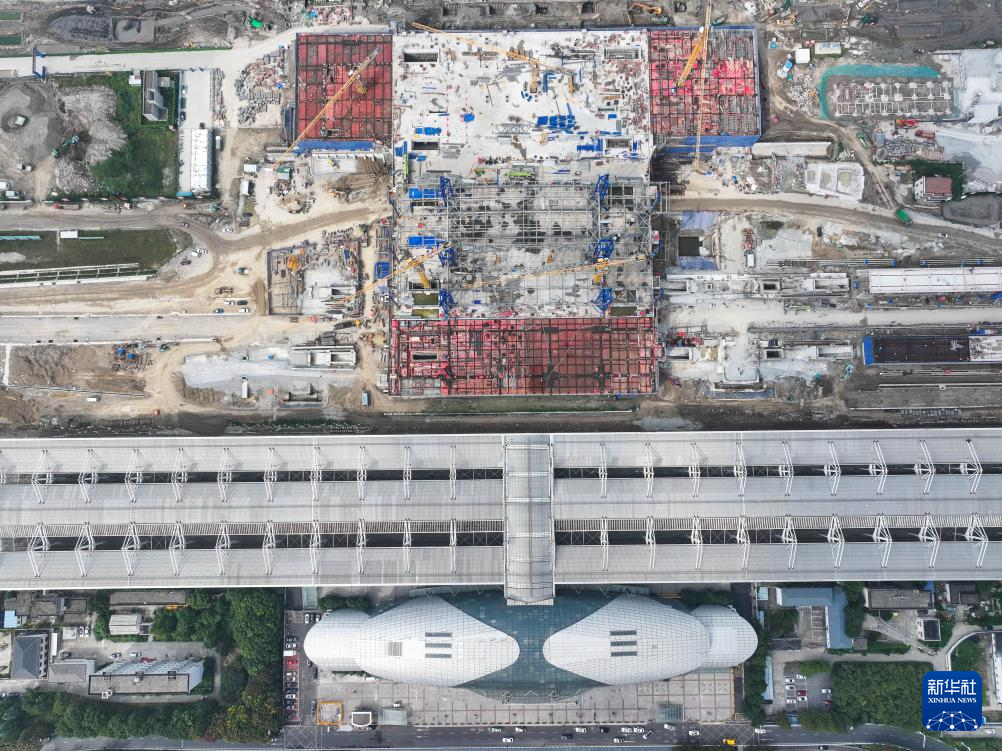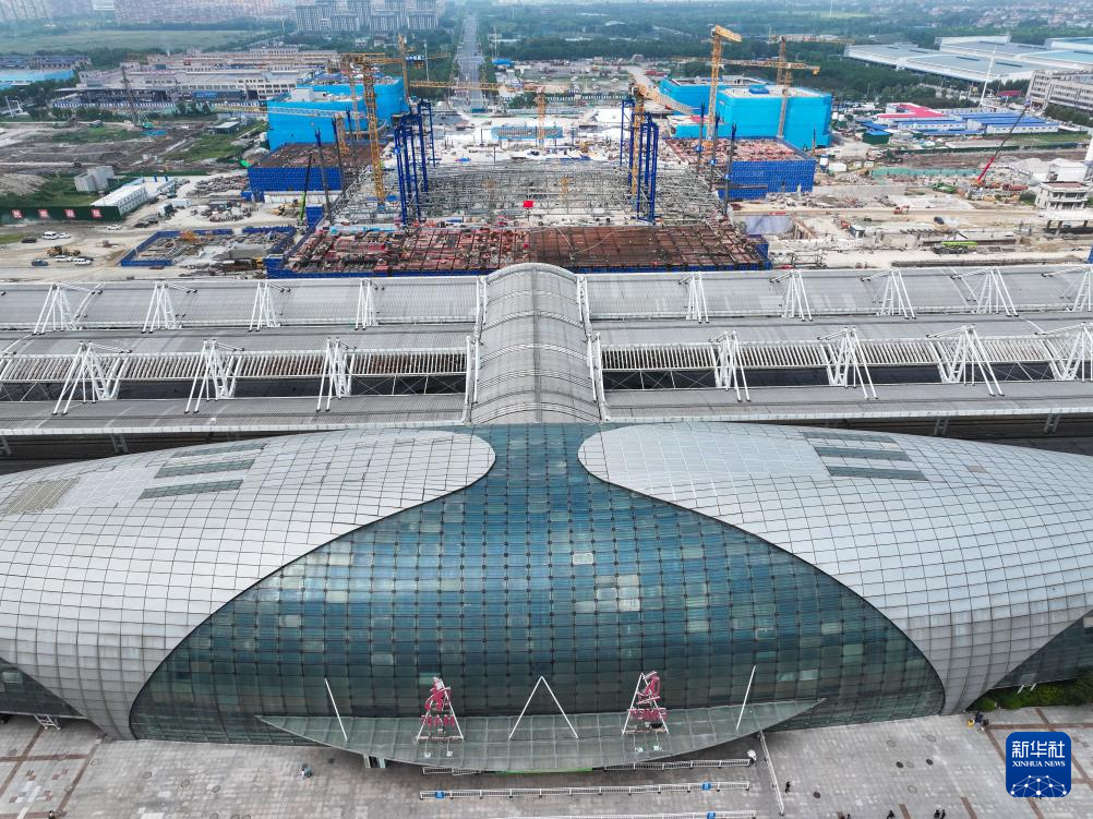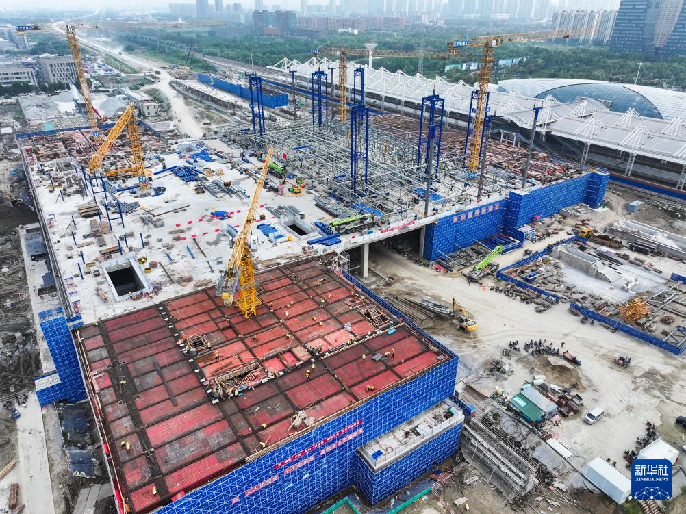 9月28日拍攝的新建南通站站房施工現場(無人機照片)。