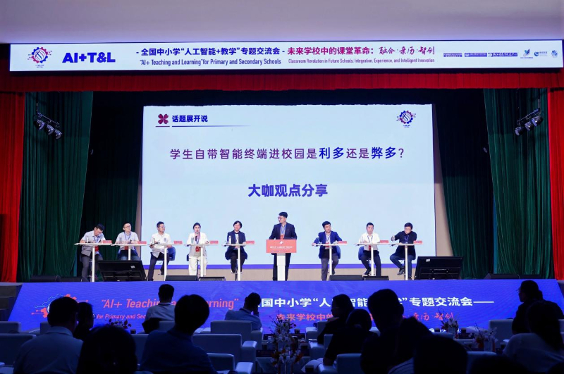 在“大咖一席談”環節,高校、科研機構、中小學的專家學者、校長及家長代表,圍繞“學生自帶智能終端進校園利與弊”“AI是學習的助力棒還是絆腳石”等爭議性話題展開擂臺式辯論?,F場觀眾通過掃碼投票實時參與互動,觀點碰撞激烈,思辨氛圍濃厚,展現出社會各界對AI融入課堂的多元思考與理性審視。
