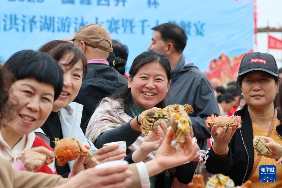 當日,第三屆洪澤湖游泳大賽暨千人品蟹宴在江蘇省淮安市洪澤區洪澤湖漁人灣舉行,來自全國各地的46支隊伍、近千人參加了此次活動。