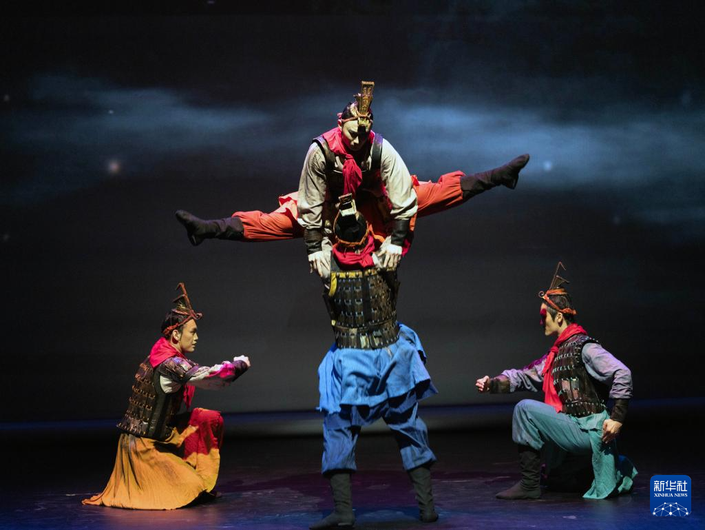 10月25日晚,北京舞蹈學院青年舞團演員在新市古鎮專場演出中表演《秦王點兵》。