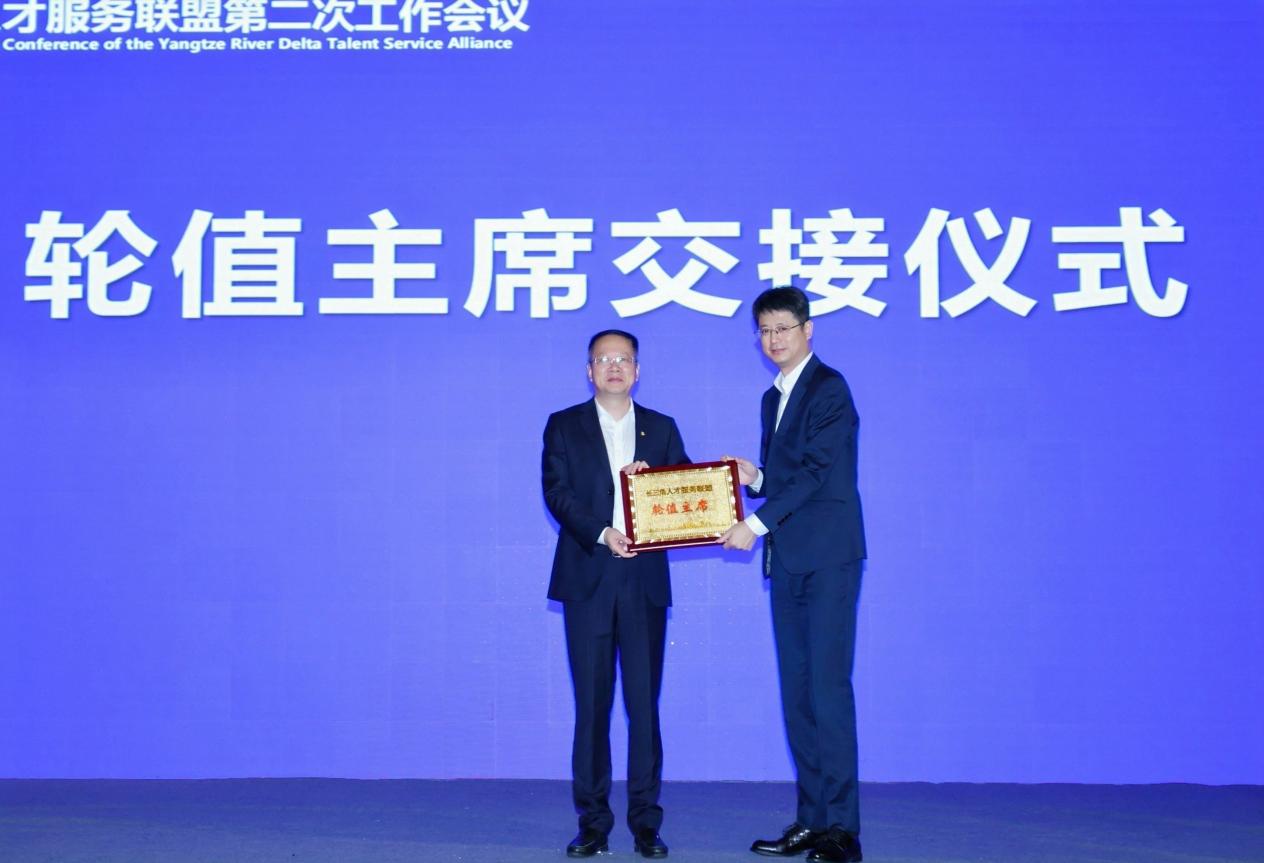 隨后舉行的輪值主席交接儀式上,新一任輪值主席作表態發言。浙江省人才發展集團黨委書記、董事長陳德意在發言中表示,聯盟自成立以來,始終秉持“共商、共建、共享、共贏”理念,努力打通區域人才合作壁壘,促進資源高效流動,集團將以此次接棒為契機,做好輪值工作。
